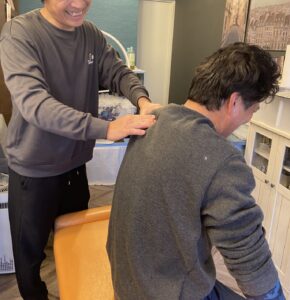 私たちは、被写体(園児さんや生徒さん)の目線に合わせ〝中腰姿勢” になって、満遍なく・もれなくを意識して撮影しています! 長々となりましたが、今日はバキバキになった腰や腕や首を、ずっとサポートしていただいている整体師さんに念入りにメンテナンスしてもらいました